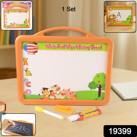 Encourage creativity and learning with this fun and colorful 2-in-1 Write and Wipe Drawing Board designed especially for kids. With a smooth whiteboard on one side and a chalkboard on the other, children can practice writing, drawing, and spelling in an engaging, mess-free way. This educational board set includes a whiteboard marker with eraser, chalks, and a duster – all packed in a lightweight, easy-to-carry design with a built-in handle. Perfect for developing early writing skills, motor coordination, and imaginative expression at home or in classrooms.