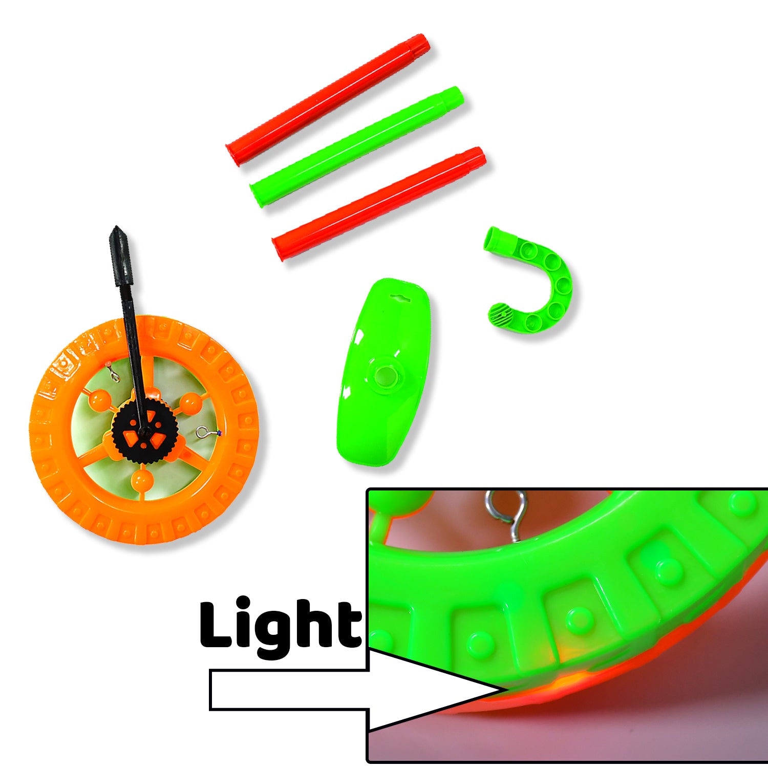 - To switch on the light simply rotate the key given on wheel. Two blinking lights are provided on the wheel, which makes this push toy more attractive for kids.