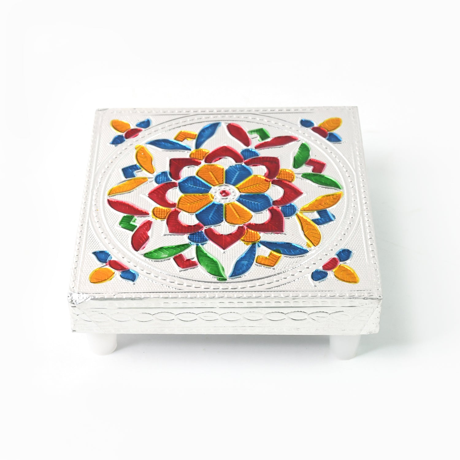 Handicraft Meenakari Wooden Chowki Puja Bajot For Home Office Decor For Puja Multicolour (1 Pc Set)